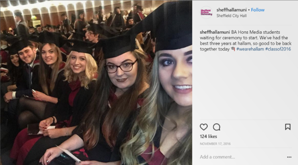 Sheffield Hallam University seemed to hit a plateau at 2747 followers in 2016, that was until they handed their social media accounts to their students and allowed for UGC within higher education. #SHUInsiders campaign gave students a day in which they could take over their Instagram account, which now has over 26,000 followers.