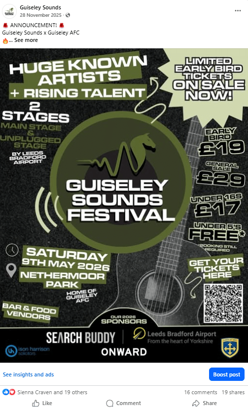 Guiseley Sounds were looking for a new website with e-commerce functionality to enable them to sell & digitally deliver tickets for their upcoming and future events.